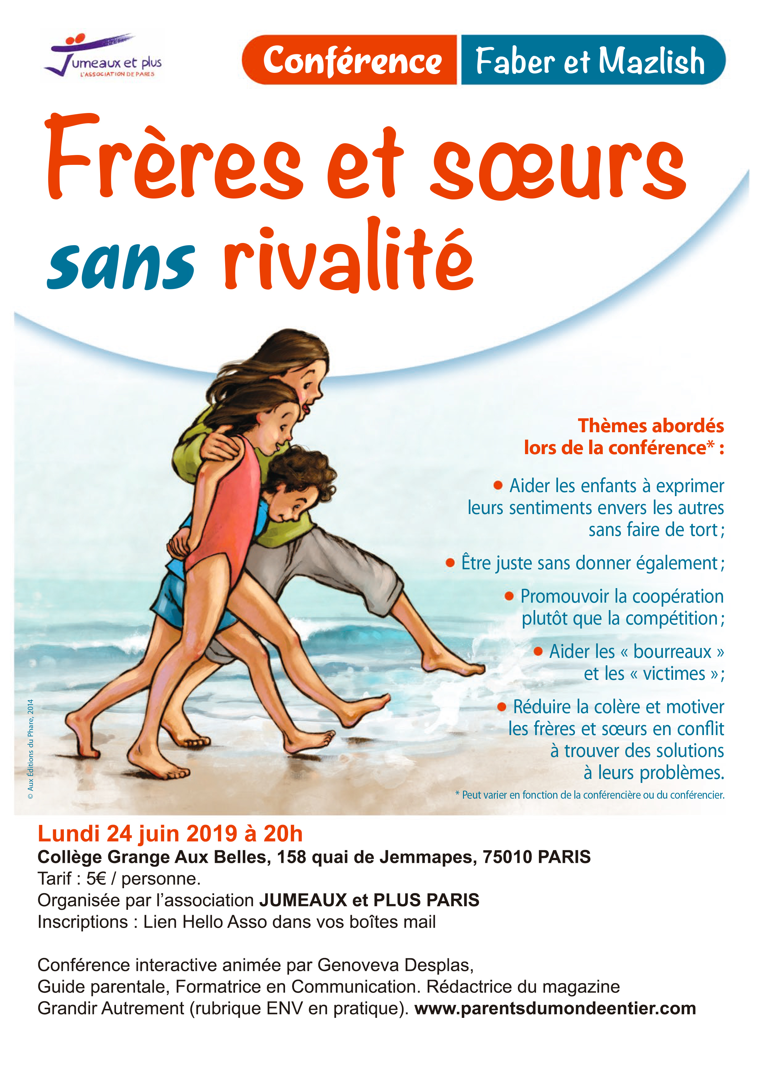 L’association Jumeaux et Plus de Paris vous convie à une conférence sur le thème de la fratrie sans rivalités :